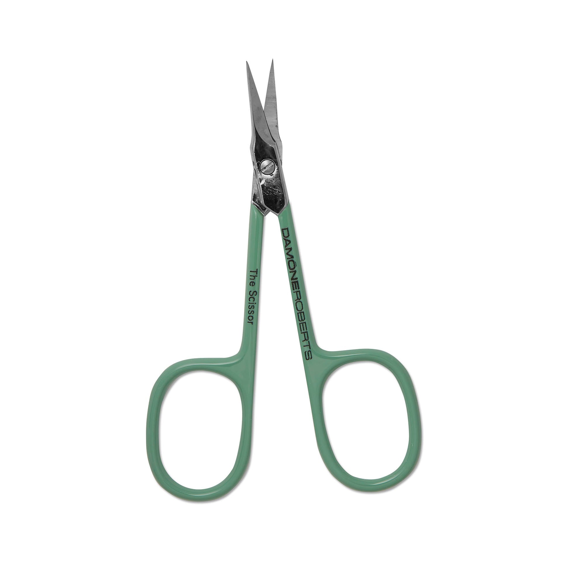 A handcrafted steel scissor with an angled tip to maintain and remove hair.