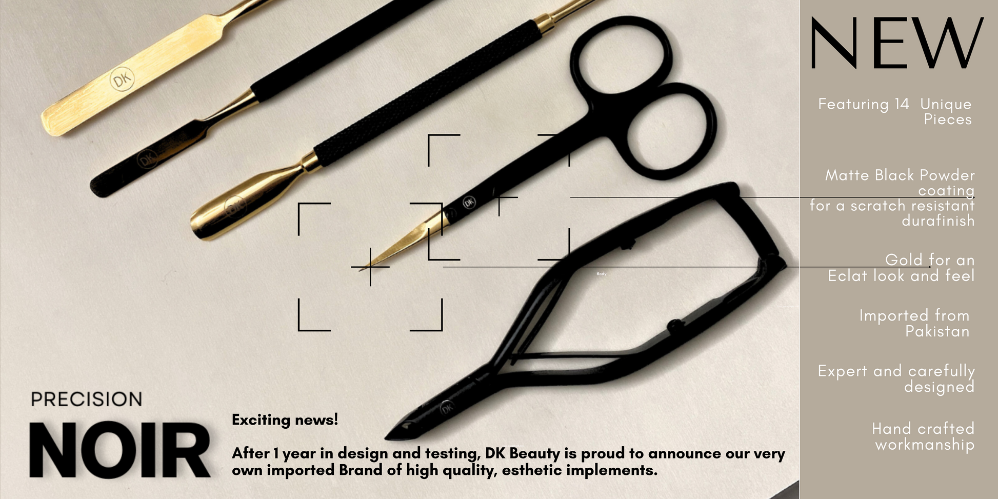 6 piece kit includes 'Padeline' stir spatula, 'Jetsin' cuticle nipper 1/4, 'stirette' double ended spatula 'Alder' cuticle pusher and scraper, 'Spring' cuticle nipper, 1/2 jaw, 'Harmony' cuticle scissors, black implement case.