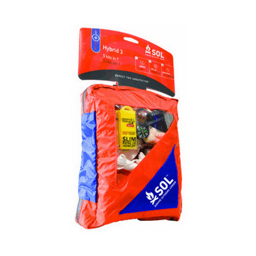 The Hybrid 3 is for anyone seeking an integrated solution for all aspects of outdoor safety. This 3-in-1 kit provides medical supplies for dressing wounds, stabilizing fractures, and treating illnesses; survival tools to signal rescuers, start fires, and stay warm; and gear repair items to jury rig just about anything back together. An ultralight nylon organizer bag with a detachable pouch for short trips away from camp makes it easy to find exactly what you need in any type of emergency.